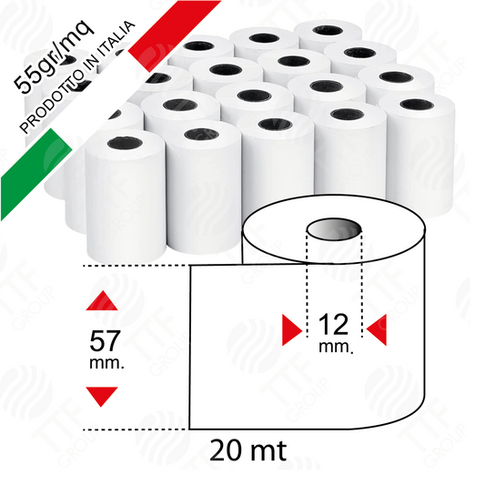Rotoli Termici POS 57x20 Ø 12; 55gr/mq (prezzo conf. € 26,00+iva)